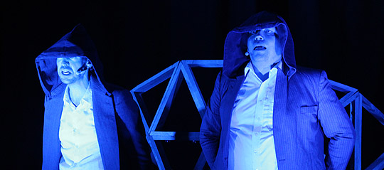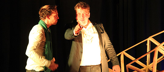 Mittwoch, 20. September 2017 Die Schauspieler Lukas Ullrich und Till Florian Beyerbach führten am Dienstag das Stück „Play Luther“ gleich zweimal vor Schulklassen im Johanneum auf, ehe es am Abend noch einmal in der Herborner KuSch präsentiert wurde. Für 570 Schüler der Johann-Heinrich-Alsted-Schule aus Mittenaar, der Wilhelm-von Oranien-Schule aus Dillenburg und des Johanneum-Gymnasiums in Herborn war es „staubfreier Geschichtsunterricht“. Dem jungen Publikum gefielen besonders die Bezüge zur heutigen Zeit. In „Play Luther“ beschäftigten sich die beiden Künstler mit dem Leben und Wirken Martin Luthers. Luthers Leben im Schnelldurchgang: „Play Luther“ raste durch die Reformationsgeschichte. Was hat die Entdeckung der Gnade Gottes mit Verstopfung zu tun? Oder: Ist „Fair Trade“ und der CO²-Handel der Ablass von heute? Diese und andere Fragen beantwortete am Dienstagabend das Bühnenstück "Play Luther" in der Herborner KuSch. Knapp 200 Besucher ließen sich am Abend auf die rasante Bühnenschau ein. Frech und auch lehrreich gewährten die beiden Akteure Einblicke in die Kirchengeschichte und in das menschliche Dasein des Reformators. Ob ein Toilettengang zur Erkenntnis von der Gnade Gottes auf der Wartburg geführt hat, ist historisch nicht belegt. Stilistisch passte es aber in die moderne Aufbereitung. Und auch verschiedene Lutherlieder wurden musikalisch ganz neu und zum Teil als Rap („Eine feste Burg…“) interpretiert. Alles das machte „Play Luther“ zu einem unterhaltsamen, aber tiefgängigen Theaterstück.